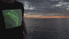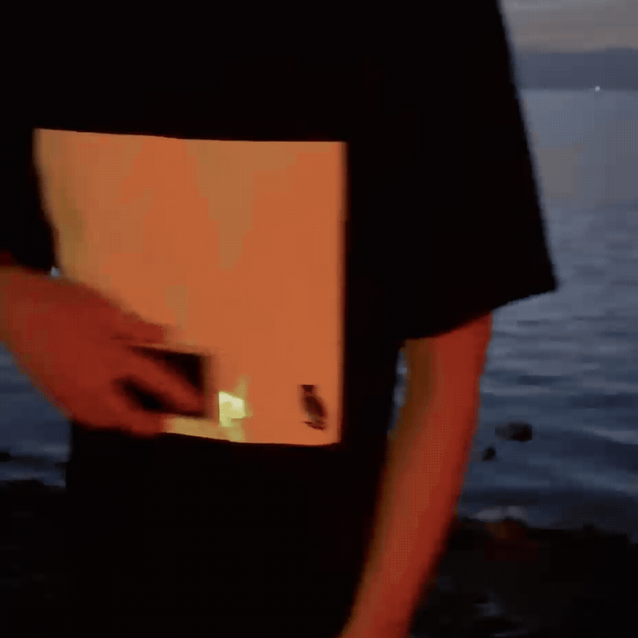 On the front, you’ll find a specially designed white panel that reacts to light. When you shine your smartphone flashlight onto this area, it creates a glowing green trail that follows the movement of the light.